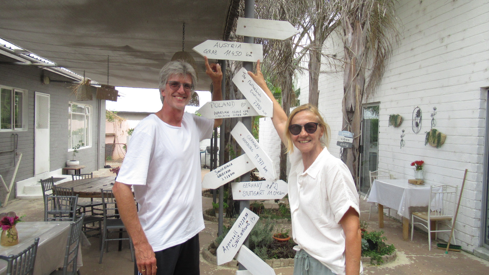 So und nun sitzen wir bei einem Gin-tonic in der Frans Und Ingo Lodge und sehen unsere Mails des Tages an und da ist eine Info eines Angestellten mit einem Foto von mir von oben bei der Bankomatbehebung am Morgen mit der Info, dass ich NAD 200,– bei der Behebung scheinbar nicht rausgezogen (und das ist hier wörtlich zu nehmen😁😂) habe und ob sie mir diese auf mein Konto überweisen sollen…das sind umgerechnet EUR 10,– . Aber allein der Aufwand das herauszufinden ist sicher immens gewesen…Kamera-Bild raussuchen, Zimmernummer zuordnen, Telefonnummer ausfindig machen und noch schreiben…dieses Trinkgeld haben sie sich wahrlich erarbeitet.😁😉🤗