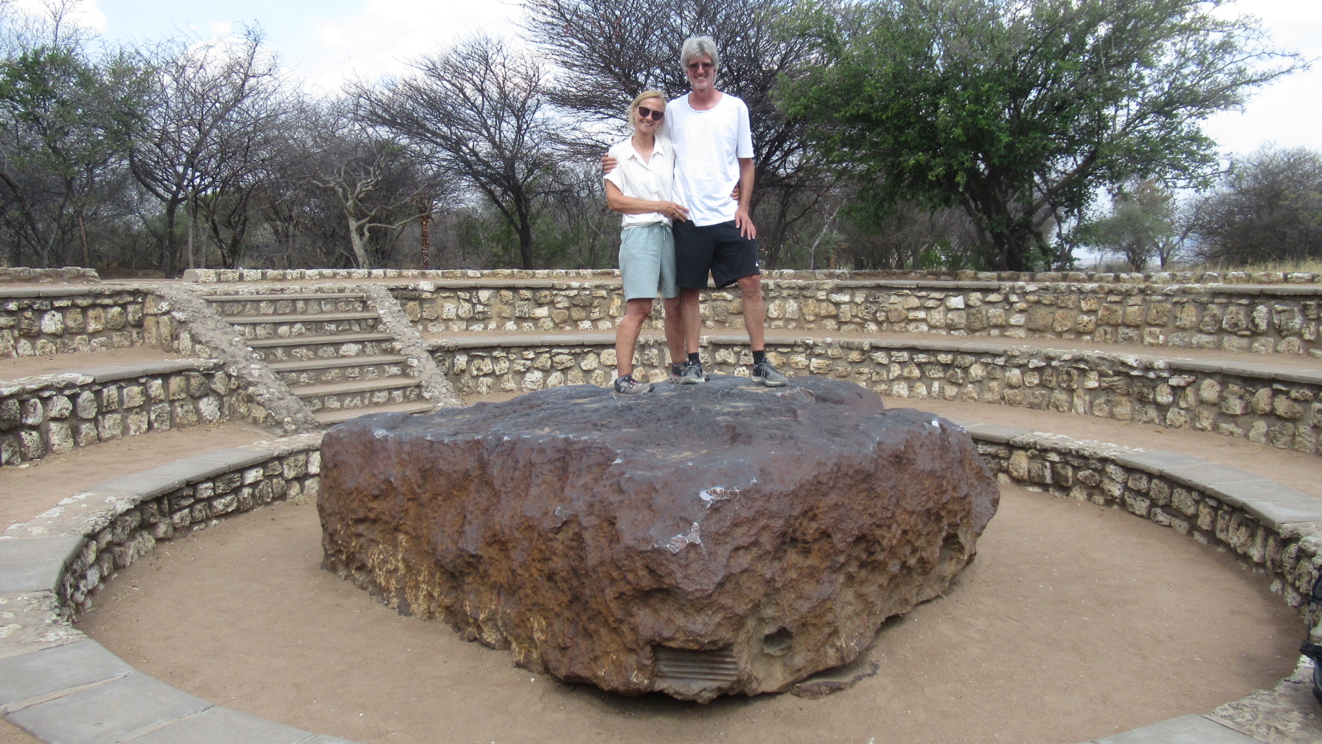 Danach ging’s ruckizucki zum Hoba-Meteorit… 80.0000 Jahre liegt der hier und sinkt langsam ein, weil er so schwer ist…50-60 Tonnen bei einem Maß von 2,7 x 2,7 x 1 Meter …80 % Eisen, etwas Kupfer und so andere Restln. Er hätte normalerweise einen tiefen Krater schlagen sollen, aber dürfte in einem ganz flachen Winkel quasi reingerutscht sein. Ob das stimmt weiß ich nicht genau. Der Mugl ist aber beeindruckend und glänzt herrlich 🤗
