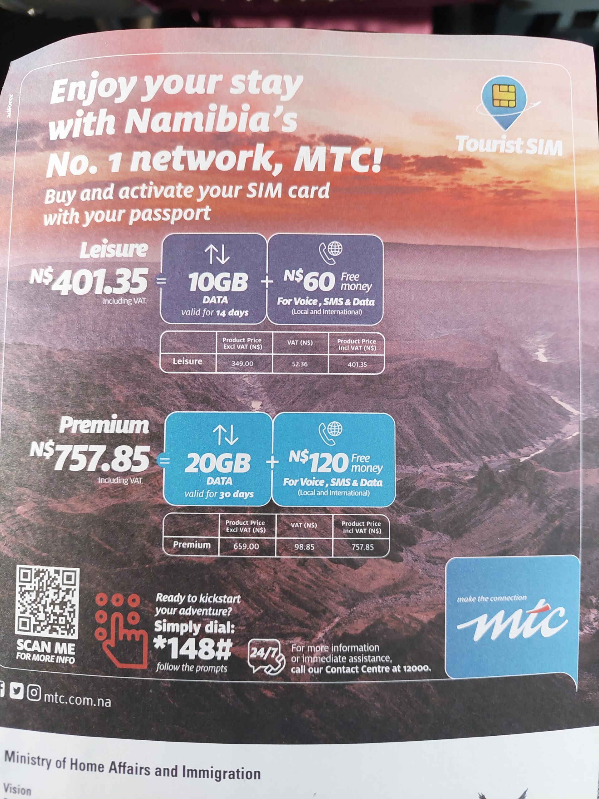 Es wird dir egal bei welchem Handy alles so eingerichtet, dass es funktioniert. Einen zweiten Shop von MTC gibt es dann nach dem Einreise- Check in der angrenzenden Halle. Wir haben das Telefon bei unserem Autotausch gut gebrauchen können😁🤗…und auch ein Datenvolumen ist nicht schlecht für manche Abfragen oder einen Hotspot.